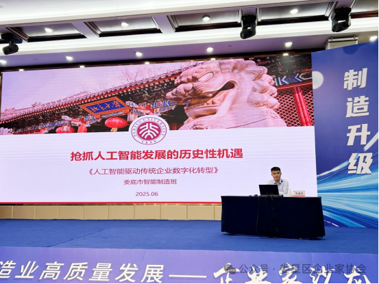 易海明主任以“制造業(yè)如何搶抓人工智能發(fā)展的歷史性機遇”為題,從認(rèn)識人工智能模型,培育人工智能模型的迫切性,培育人工智能模型的戰(zhàn)略性要素,詳解人工智能模型培育案例和趨勢四個方面系統(tǒng)剖析了人工智能技術(shù)演進脈絡(luò)及其與制造業(yè)融合的核心場景,結(jié)合國內(nèi)外標(biāo)桿案例,為在場企業(yè)家描繪了AI賦能研發(fā)設(shè)計、生產(chǎn)流程優(yōu)化、供應(yīng)鏈管理、質(zhì)量控制和精準(zhǔn)營銷的全鏈條圖景?;迎h(huán)節(jié),企業(yè)家結(jié)合自身轉(zhuǎn)型痛點踴躍提問,易主任就技術(shù)選型、投入產(chǎn)出比、安全風(fēng)險等實際問題進行了針對性解答,現(xiàn)場交流氣氛熱烈。