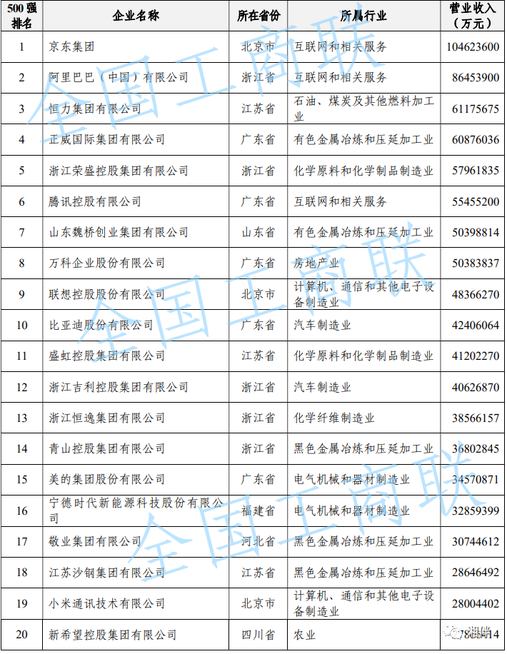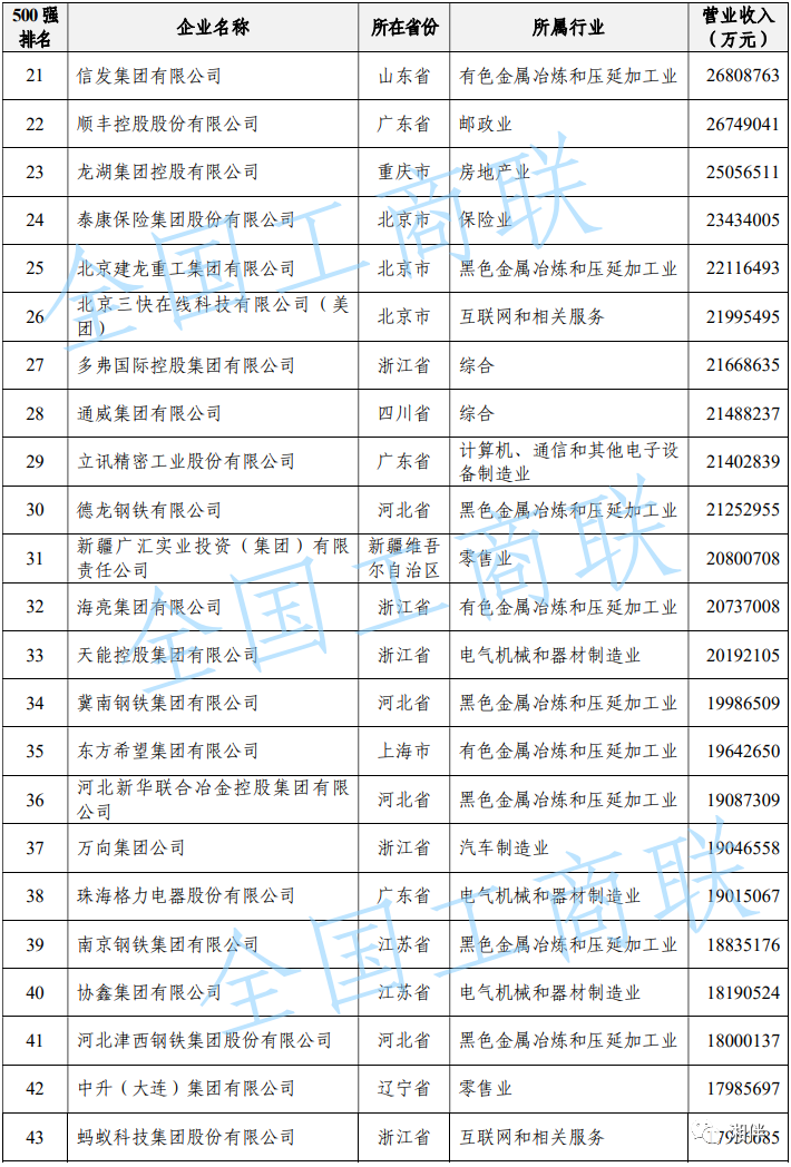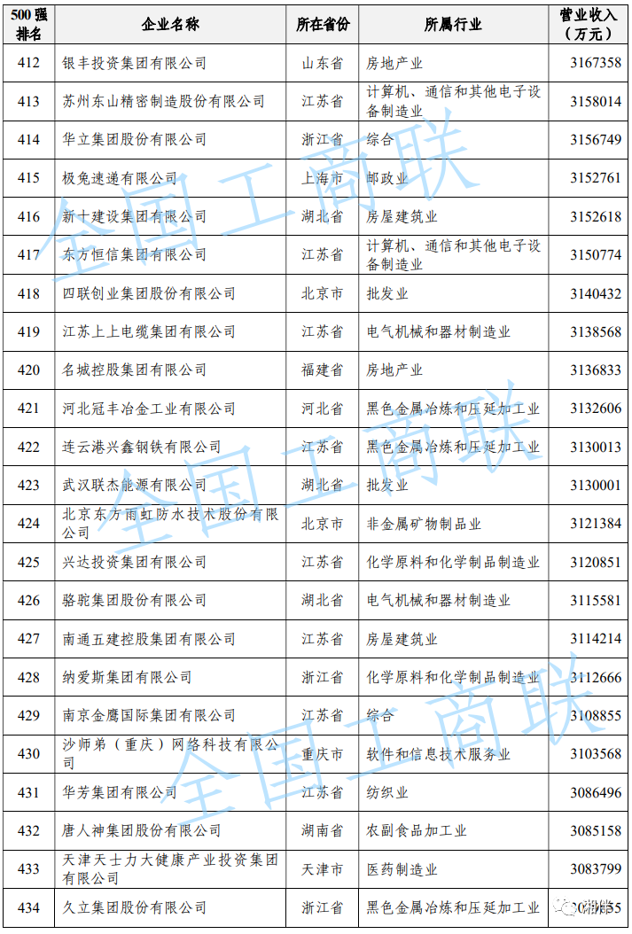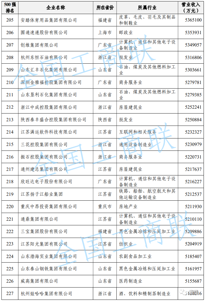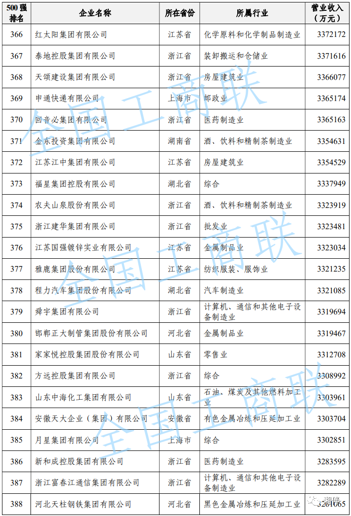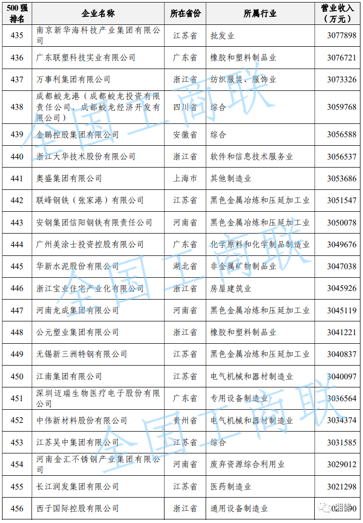 2023中國民營企業(yè)500強(qiáng)榜單