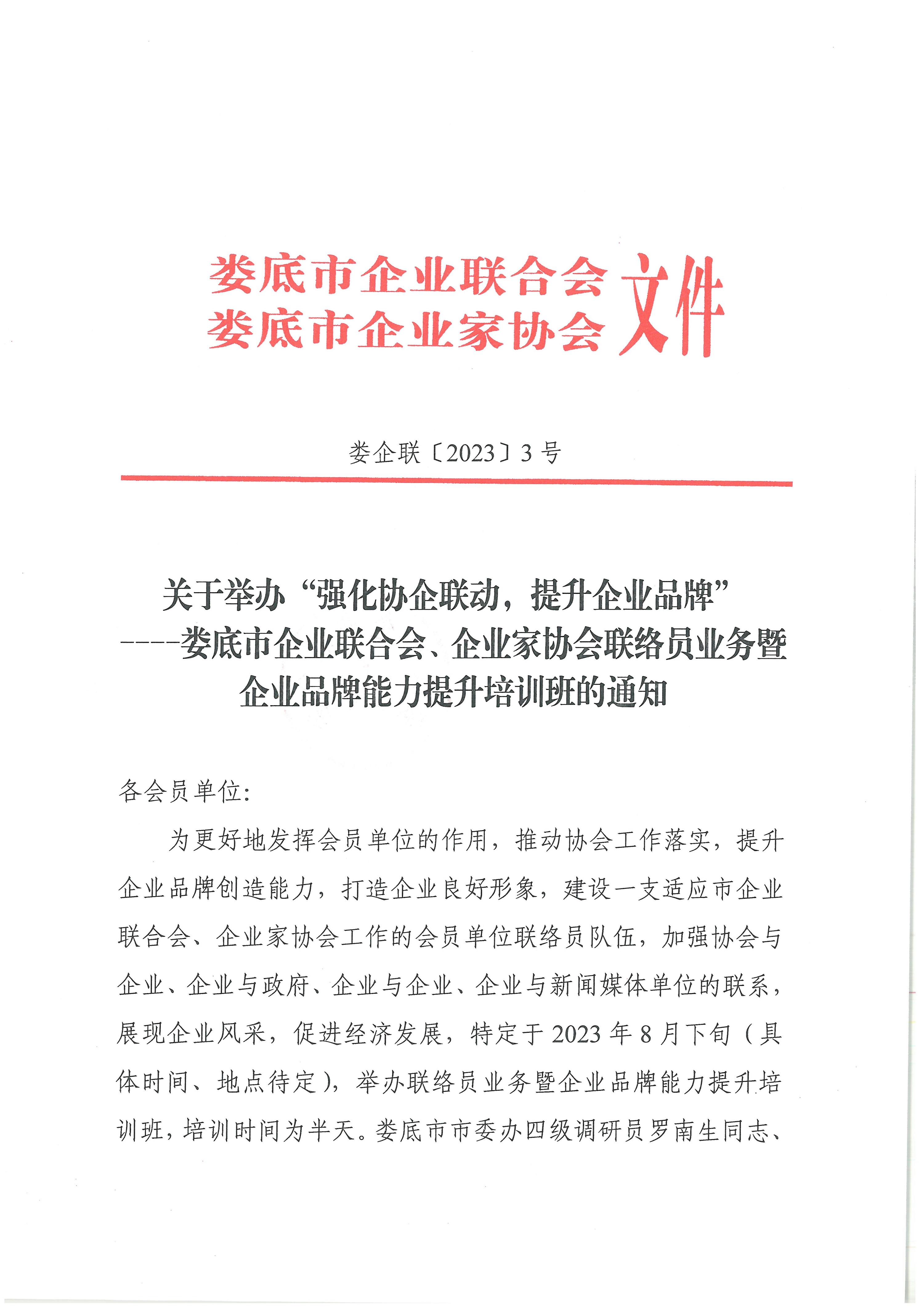 婁底市企業(yè)聯(lián)合會、企業(yè)家協(xié)會聯(lián)絡員業(yè)務暨企業(yè)品牌能力提升培訓班的通知