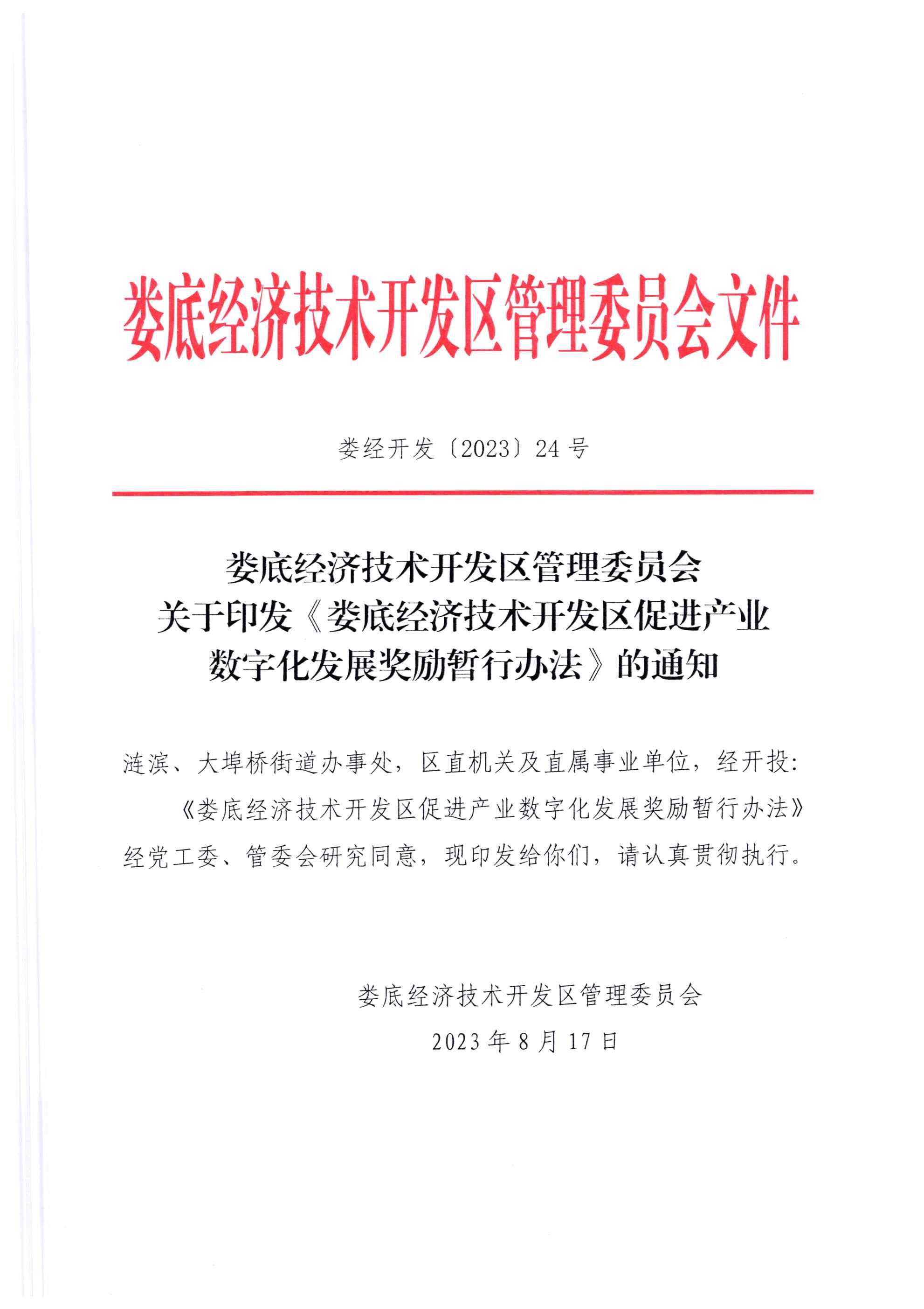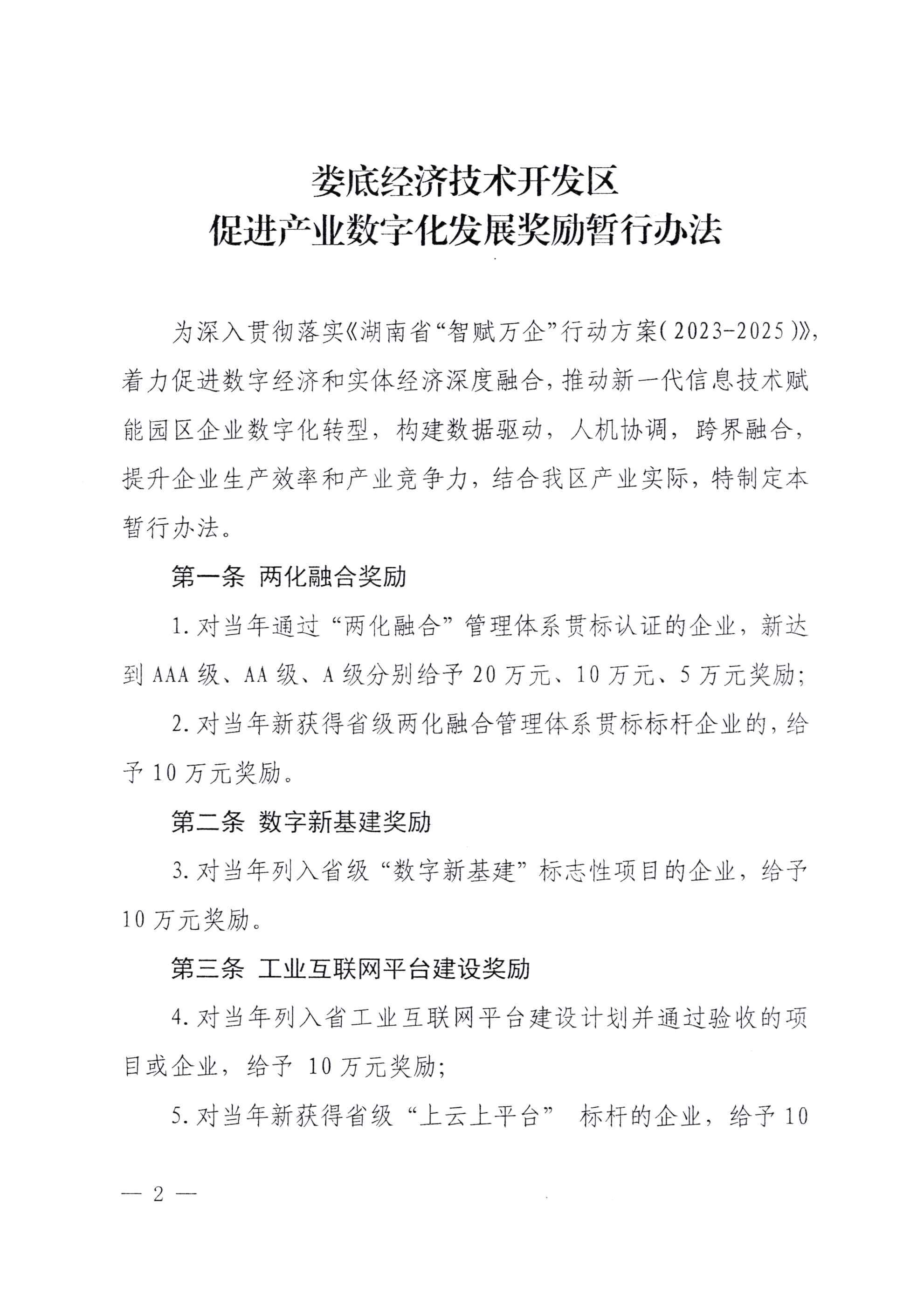 婁底經(jīng)濟(jì)技術(shù)開(kāi)發(fā)區(qū)管理委員會(huì) 關(guān)于印發(fā)《婁底經(jīng)濟(jì)技術(shù)開(kāi)發(fā)區(qū)促進(jìn)產(chǎn)業(yè) 數(shù)字化發(fā)展獎(jiǎng)勵(lì)暫行辦法》的通知