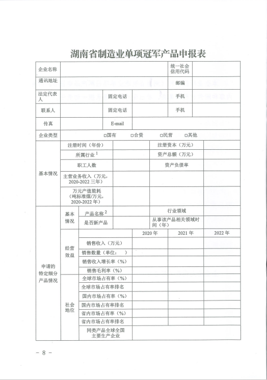 關(guān)于組織推薦第四批湖南省制造業(yè)單項(xiàng)冠軍產(chǎn)品的通知